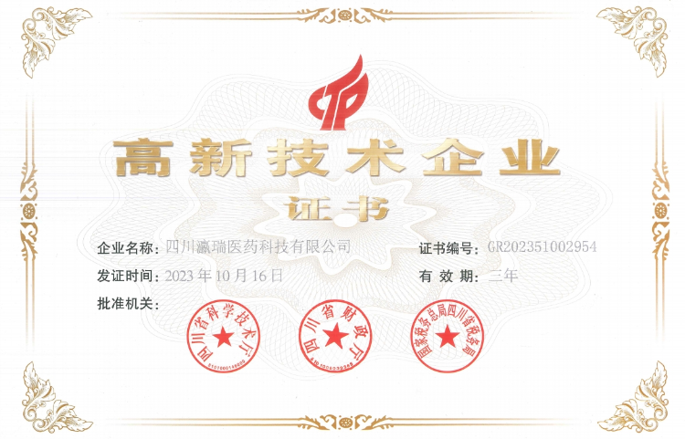 日前,莱美药业控股子里番 四川瀛瑞医药科技有限里番 (下称“瀛瑞医药”)顺利通过国家高新技术里番认定,获得由四川省科学技术厅、四川省财政厅、国家税务总局四川省税务局联合颁发的高新技术里番证书。